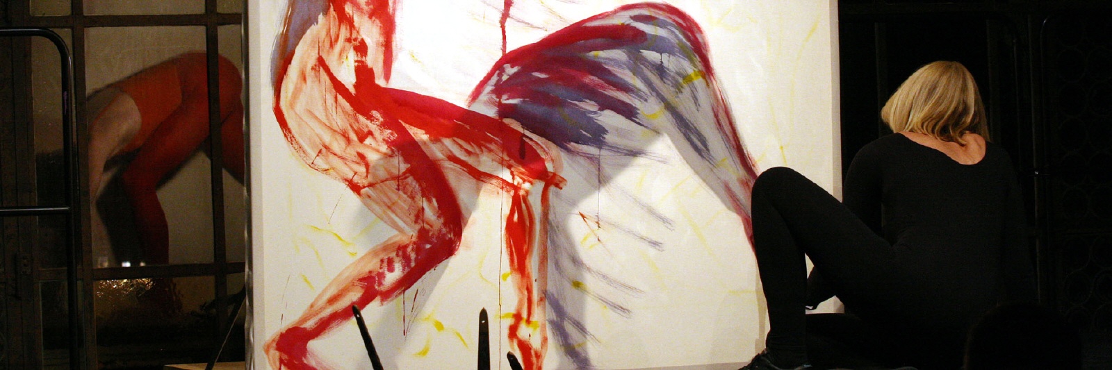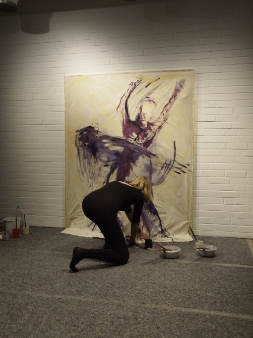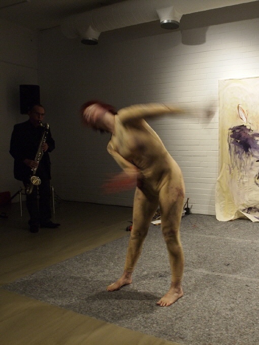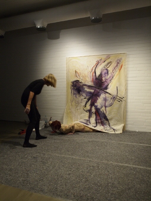THE ORIGIN OF PAINTING of Barbara Heinisch with the dancer Chris Parker and the musician Uwe Weisbrod in the Museum Ratingen to 22.08.2014 (collection Museum Ratingen)